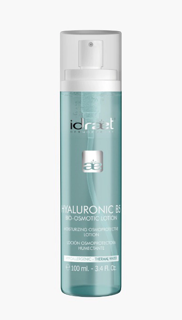 | HIALURONIC B5 BIO-OSMOTIC LOTION Hidratación profunda y prolongada Loción osmoprotectora que evita la deshidratación a lo largo del día y protege la piel de los factores externos. Confort para pieles deshidratadas y delicadas. Contiene: ? Agua Termal ? Ácido Hialurónico ? Vitamina B5 ? Hydraskin ? Extracto de Matcha ? Aloe Vera |